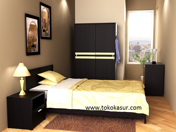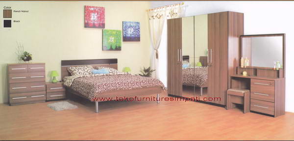 ![]() (gambar di atas contoh lemari Toronto warna hitam) KAMAR SET TORONTO Rp. 18.850.000 (1 ranjang 180×200 + 1 kasur bradford hotel bed + 1 meja rias + 2 nakas)